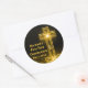 Diseño con colores dorados y marrones "La primera comunión sagrada de Michael" y diseño artístico original para pegatinas de cita con una cruz especial con ráfagas de estrellas, todo reflejado en las tranquilas olas de agua de abajo. Recuerden este día sagrado especial con pegatinas personalizados para familia y amigos. Personalice fácilmente el nombre y la fecha de estos pegatinas. Vea otros pegatinas de la Primera Comunión, imanes, botones, pines, polos y aglutinantes en la tienda MVDesigns.