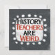 "Los profesores de historia son raros" es un lindo diseño de texto en gris con texto en negro y rojo, junto con una forma de acento blanco y puntos caprichosos de textura blanca que lo rodean.