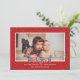 El rojo personalizado cree en las mágicas tarjetas de Navidades fotográficos que incluyen luces de Navidades, estrellas y caída de nieve sobre un fondo rojo claro. Personaliza fácilmente estas tarjetas de Navidades de fotos rojas con tu imagen, texto y un nombre de familia.