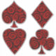 El pegatina de vinilo de 14" x 14", con una imagen de una pala, club, rombo y corazón rojos y negros trenzados, recuerda a los rosas de la Reina, con una decoración fiesta de Wonderland. Ver toda la colección de Pegatinas de Wonderland en INVITES | Sección Pegatinas y etiquetas.
