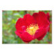 Fotografía macro de un rosa en miniatura de un solo pétalo rojo brillante con un centro amarillo soleado.