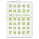 Una tarjeta de bienvenida Get Well Soon, con un patrón de rosebudos rosas sobre un fondo blanco, de un diseño acuarela pintado a mano de Judy Adamson. Por favor, siéntase libre de personalizar el mensaje interno.