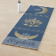 Personalizar esta alfombra de loto dorado y yoga lunar con tu nombre para la próxima práctica de yoga. La alfombra de yoga tiene estrellas doradas y azules/grises, lunas de media luna dorada acompañadas de flores de loto azules/grises y una flor de loto dorado rodeada de círculos y estrellas mágicos. Regale como regalo a tu profesor de yoga, yogui en tu vida, o use como alfombra para entrenamiento místico.