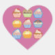 Pegatina del corazón con diseño con muchos quequitos de arte vectorial sobre fondo rosa.