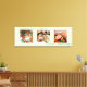 Muestra tus preciados recuerdos y déjalos personalizar tus interiores. Seleccione tres de sus fotos personales favoritas y cárguelas en esta plantilla de arte fotográfico tríptico fácil de usar. Tus fotos aparecerán con un fondo negro. La superposición de nombres y texto personalizado en guiones elegantes añade un toque artístico. Este memento impreso de tela de calidad hará un regalo significativo para ocasión boda, aniversario, nuevas madres y otros momentos importantes de la vida.