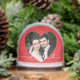 Modern and stylish custom snow globe design features a favorite photo in a big heart shape with a minimal white "Love" typography overlay design that includes flourish and heart details. The red colored background can be modified. A unique gift idea for couples, newlyweds, or for your loved one on Valentine's Day!