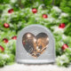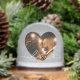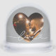 Modern and stylish custom snow globe design features a favorite photo in a big heart shape with a minimal white "Love" typography overlay design that includes flourish and heart details. The neutral silver gray colored background can be modified. A unique gift idea for couples, newlyweds, or for your loved one on Valentine's Day!