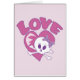 Calavera y huesos cruzados en un corazón rosado con texto de AMOR. Este es un cráneo de niñas adorable para mujeres y niños.