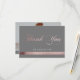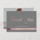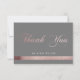 caligrafía rosa dorada escritura personalizada "gracias" sobre un fondo gris ahumado con borde rosa dorado y tus monogramas en letra sans serif. El reverso tiene tu foto personalizada para agradecer a tus seres queridos con estilo
