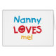 La nana me ama camisetas, tarjetas, pegatinas, bolsas de pantalones y más con un colorido diseño de corazón y texto rojo, amarillo y azul. ¡Esta nana me ama ropa y artículos de regalo hará sonreír a la nana!