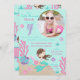 La séptima tarjeta de la invitación del cumpleaños de little mermaid con las criaturas subacuáticas y una foto insertan la plantilla.