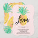 Este diseño está inspirado en un moderno tema tropical de verano, con Relieve metalizado de oro falso y piñas amarillas frescas.