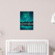 Ilustracion de viajes digitales de arte de las luces del norte sobre Islandia.