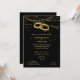 Una hermosa invitación de boda con luces brillantes y un par de alianzas de oro para una pareja gay o lesbiana.