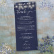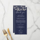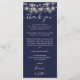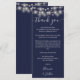 Una elegante tarjeta de recepción de agradecimiento de boda en azul marino con bonitas luces de cadena. Personalizada con su mensaje especial de agradecimiento en tipografía elegante. Un especial recuerdo de agradecimiento para sus invitados. Diseñado por Thisisnotme©