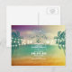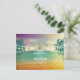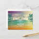 Una playa magnífica permite salvar las postales de fecha con una tipografía de escritura moderna, conchas marinas, caligrafía estelar y diseño de cuerdas de luces. Agradable puesta de sol en los colores del mar con un color oscuro / degradado verde azulado, violeta, azul y amarillo / naranja. La boda perfecta en la playa, excepto la fecha de la boda de destino, la boda en la playa o el boda de la costa.