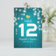 Plantillas de Asiento de Bodas / Número de Mesa / Tarjeta de Acompañante - Elegantes Luces de Cadena Vintage con Fondo Brillante de Turquesa Azul.