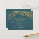 Tarjeta de respuesta de cumpleaños de Quinceañera elegante con hermosas luces de cadena doradas con purpurina y efecto bokeh brillante sobre un fondo azul turquesa intenso. Contáctenos para obtener ayuda con la personalización o para solicitar productos coincidentes.