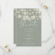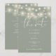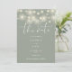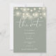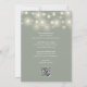 Esta elegante invitación de save-the-date en verde salvia, con hermosas luces de cadena, se puede personalizar con su información en tipografía chic con el código QR del sitio web de su boda y detalles en el reverso. Diseñado por Thisisnotme©