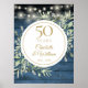 Con delicada y suave aguarela de vegetación campestre y bonitas luces de cadena sobre un fondo de paneles de madera azul, este diseño elegante y rústico para el 50 aniversario de bodas se puede personalizar con la información de su aniversario especial en texto dorado elegante. Diseñado por Thisisnotme©