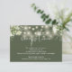 Esta elegante tarjeta de detalles de boda de color verde oliva, con hermosas luces de cadena y vegetación floral, se puede personalizar con su información en tipografía chic. Diseñado por Thisisnotme©