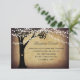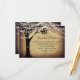 Tarjetas de cierre de recepción de boda con silueta de corazón tallado en roble rústico con luces colgando en los árboles y un fondo de papel pergamino antiguo rústico. Estas tarjetas de recepción son perfectas para una boda rústica de campo.