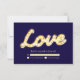 El amor escrito en luces de cartel sobre un fondo azul oscuro da a esta RSVP un brillo y glamour vintage. Desplázate hacia abajo para ver la colección completa de bodas. Si necesitas artículos adicionales para tu evento, simplemente contáctanos en prettyfancyinvites@gmail.com con tu solicitud.