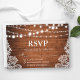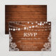 Tarjeta de RSVP de Encaje con Luces de Cuerda de Madera para Boda Rústica