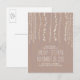 tarjetas postales rústicas con luces de cuerda lindas para guardar la fecha para tu boda en el granero. Estilo casual y trendy con textura de fondo de madera y luces de cuerda dibujadas a mano para guardar la fecha.