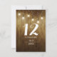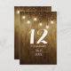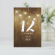 Luces Rústicas de Cadena para Número de Mesa Country. Un hermoso diseño rústico de madera de granero con luces brillantes. Simplemente agregue sus detalles personalizados en la parte delantera y trasera de la tarjeta a través de la fácil opción 'Personalizar esta plantilla'. Hay una variedad de tamaños, formas y tipos de papel para adaptarse al diseño.