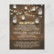 Estilo rústico de luces de cuerda y tarjetas de recepción de boda con tarros de mason colgantes
