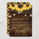 Invitación de boda de girasoles con luces de frasco de mason y hermosa impresión que puedes personalizar con toda la información de tu boda. El fondo tiene un aspecto de madera oscura de granero, el entorno campestre perfecto. Los girasoles están en la parte superior de esta invitación, hay diferentes variaciones disponibles en la suite de invitaciones de girasoles. Por favor, no dudes en ver más de esta suite de invitaciones de boda o de otras haciendo clic en el enlace a mi tienda a continuación.