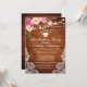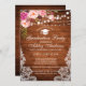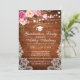 Madera rústica, luz de cuerdas y carta de invitación para fiesta de graduación de encaje - Floral rosa