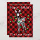 Diseño festivo de vacaciones para cebra - Luces centelleantes rojas y verdes - Cuadro escocés tartán rojo y negro - personalizable.