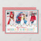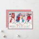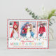 Tarjeta de felicitación de Navidad popular y de moda para tres fotos familiares con una cadena de luces de Navidad con el dicho "Que tus fiestas sean alegres y brillantes" sobre un fondo de rayas blancas y rojas con un borde rojo y azul turquesa. La parte trasera de nuestra exclusiva tarjeta de Navidad con foto presenta un fondo de rayas rojas y blancas. Linda tarjeta de Navidad con luces de árbol de Navidad para mostrar a tu hermosa familia que a tus hijos les encantará.