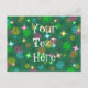 Una diversión, diseño festivo, retro de la mirada inspiró por las luces de hadas arco iris-coloreadas en un árbol de navidad. Postal con un diseño adaptable del verde, del azul, del rosa, amarillo-naranja y verde para que usted personalice con su propio texto, imágenes e ideas. Creado usando técnicas digitales por el perry de los jess.