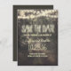 rústico salva las tarjetas de cita con luces de noche en la cuerda. Para una boda vintage en el campo o jardín.