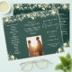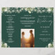 Este elegante programa de boda trifold presenta vegetación floral y luces de cuerda sobre un fondo verde esmeralda. Diseñado por Thisisnotme©