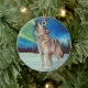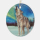 Un lobo solo está gritando bajo aurora boreal colorida. Del "baile se enciende", la pintura de acrílico original de Morgane. Para todos los amantes animales.