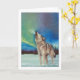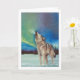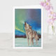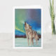 Un lobo solo está gritando bajo aurora boreal colorida. Del "baile se enciende", la pintura de acrílico original de Morgane. Para todos los amantes animales.