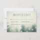 RSVP de boda rústica con abetos decorados con luces de hadas.