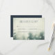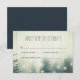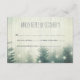 RSVP de boda rústica con abetos decorados con luces de hadas.
