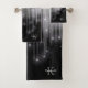 Luces blancas, como la lluvia de vidrio en una lámpara de araña, caen en cascada por la cara de este diseño impactante que también incluye tu monograma y nombre en la esquina delantera. Este glamoroso diseño de toallas con fondo negro también está disponible en una variedad de otros colores para satisfacer sus necesidades. Busque ID789 para ver otras opciones de color y productos con este diseño.