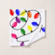 Este juego de toallas está diseñado por Navidades con luces enredadas en rojo, azul, amarillo, verde, rosa y morado.
