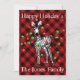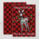 Diseño festivo de vacaciones de Cebra - luces centelleantes rojas y verdes - cuadro escocés tartán rojo y negro personalizable.