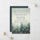 Invitación rústica de elementos con abetos decorados con luces de hadas.