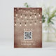 RSVP de boda con tema industrial con luces vintage de Edison colgando sobre un fondo de ladrillo rústico desgastado.