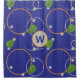 Las luciérnagas brillantes bailan entre hojas flotantes sobre un fondo azul profundo. Los anillos de naranja y plata crean un efecto como las ondas estilizadas para darle a la base un aire de agua. Personalizar la inicial en esta cortina de ducha para crear una decoración personalizada para tu cuarto de baño.
