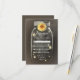 Tarjetas de RSVP de boda rústicas y caprichosas con frasco de albañil vintage, con un fondo de cielo nocturno marrón oscuro, luciérnagas volando y acento de flor de margarita.