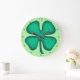 Lucky 4 Leaf Irish Clover reloj de pared verde